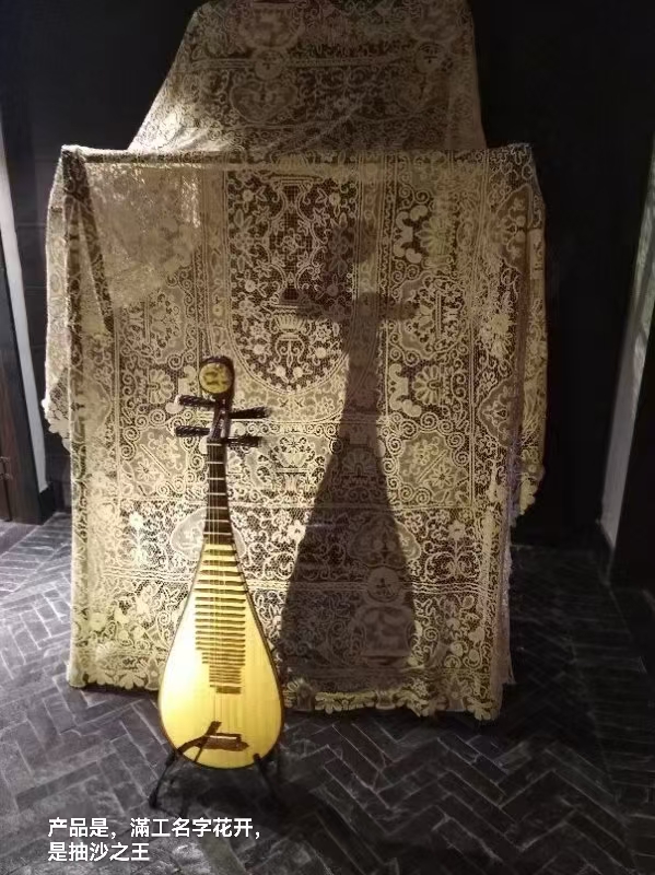 图为滨州郝洪香代领的博兴工艺美术厂出品的非遗棒槌花边绣系列作品